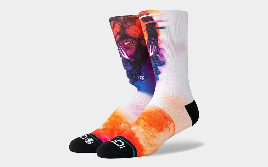 In honor of the 10th anniversary of Kid Cudi’s Man on the Moon album, Stance has put the classic record on a pair of socks. The collection includes three pairs of crew socks that feature artwork from the album and other designs inspired by the Man on the Moon himself.