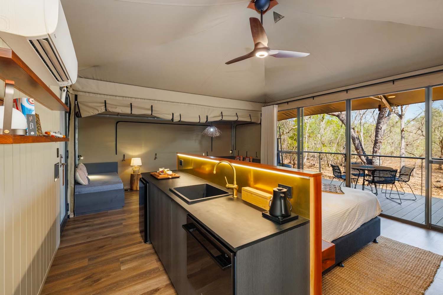 Set in the Bullo River Valley, Bullo River Station’s original homestead was built in the early 1960s. Of course, a lot has changed since then, including ownership, but much of the original homestead remains, including its original oceanic rock floor. The guest rooms are decorated in shades of the valley and with objects collected from around the property, and each one opens out onto the lawn. It’s teeming with life, but the guest quarters — pool included — are a luxe oasis of calm in the (metaphorical) desert. This is another property where you could easily spend a week and still not be ready to leave come check out. I’d even go so far as to say it was one of my favorite stays of all time.