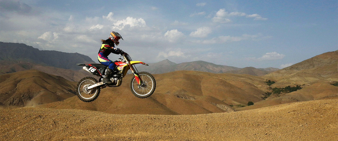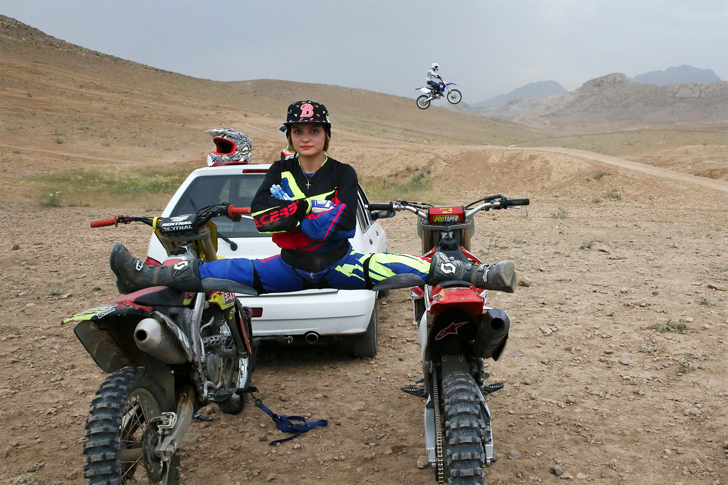 That’s a long way from the dusty streets of a village where a 15-year-old girl first saw a woman riding a bike and was fascinated. She still can’t ride on public roads, but on the off road track Behnaz is every bit as good as the guys, and she knows it.