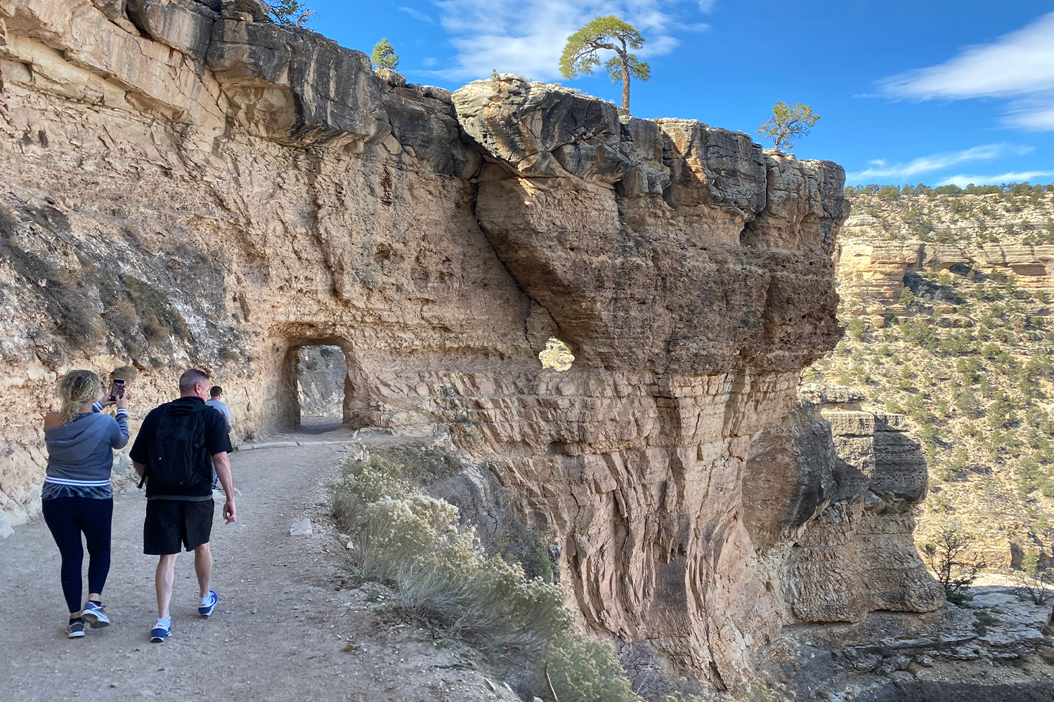 No park pass? No problem.The Grand Canyon is so large, your eyes and mind conspire to trick you. Stepping onto Grand Canyon West’s SkyWalk later that afternoon, I looked down nearly 800 feet to the canyon bottom. Although my brain knew I was safe — millions of visitors walk it each year without incident — I still had a deep, sinking feeling in the bottom of my testicles. The Colorado River looked so close, I could almost hit it with a stone. But according to security guard Sean Parks, the river was actually 4,000 feet down and 2.7 miles away. Likewise, the opposite side of the canyon looked much closer than it actually was.