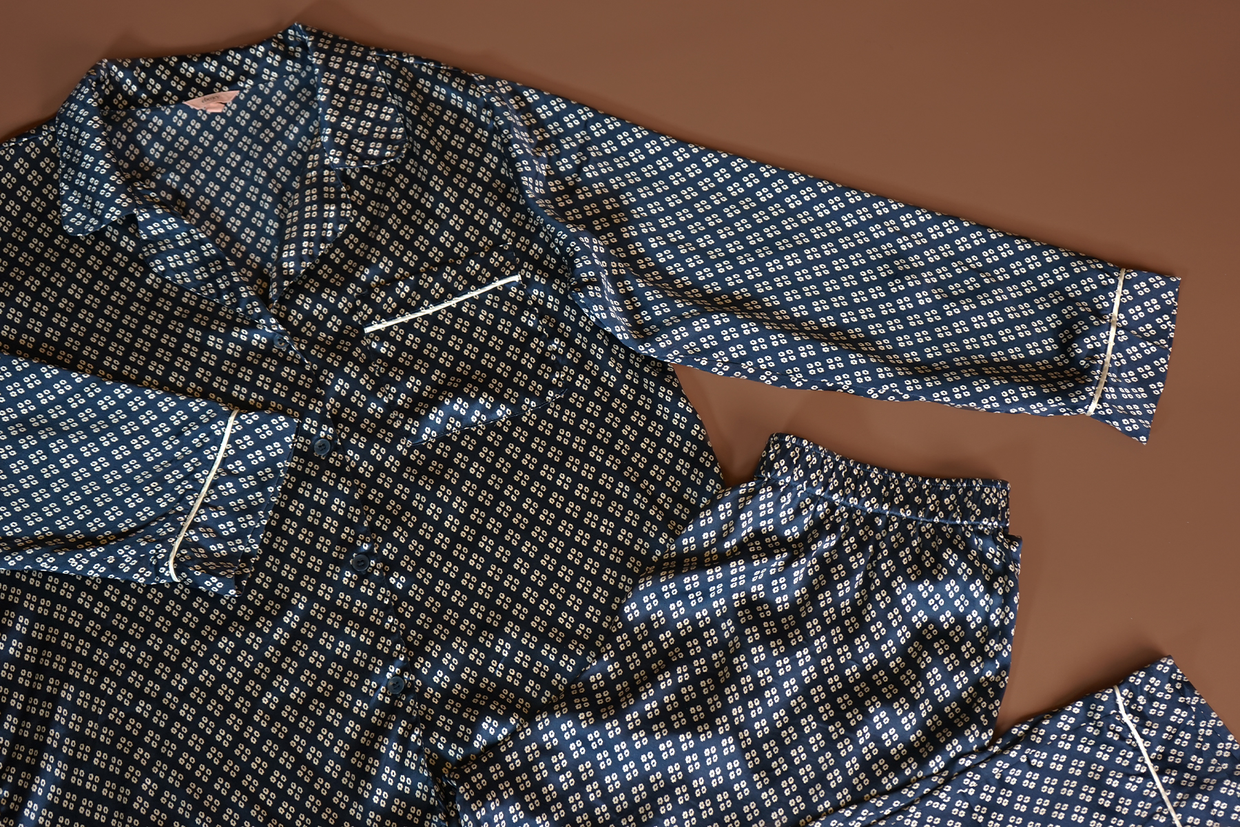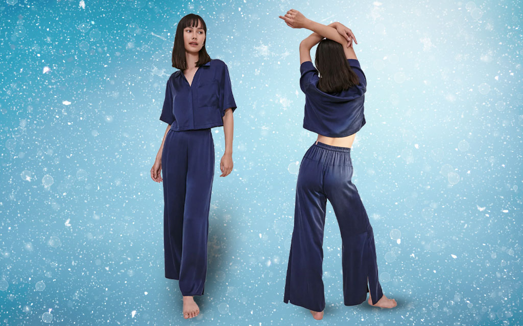 Washable silk is always a good idea. The revolutionary fabric feels like silk, looks like silk but doesn’t require the same rigid upkeep as regular silk does. Now, she can relax completely and in style in this printed pajama set.