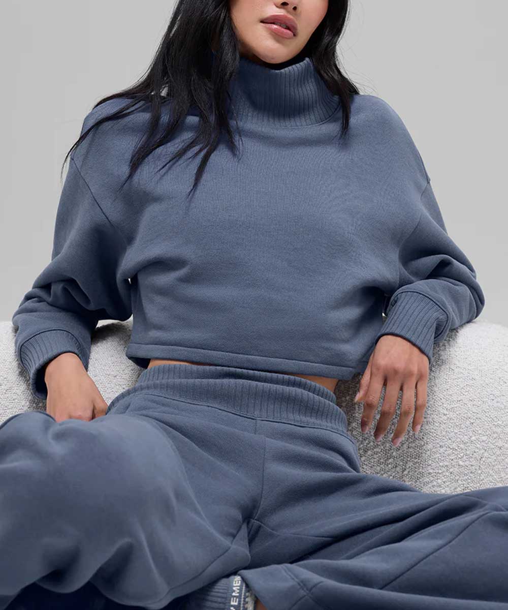 A classic fisherman’s sweater, but with a cropped, flattering fit for her.
