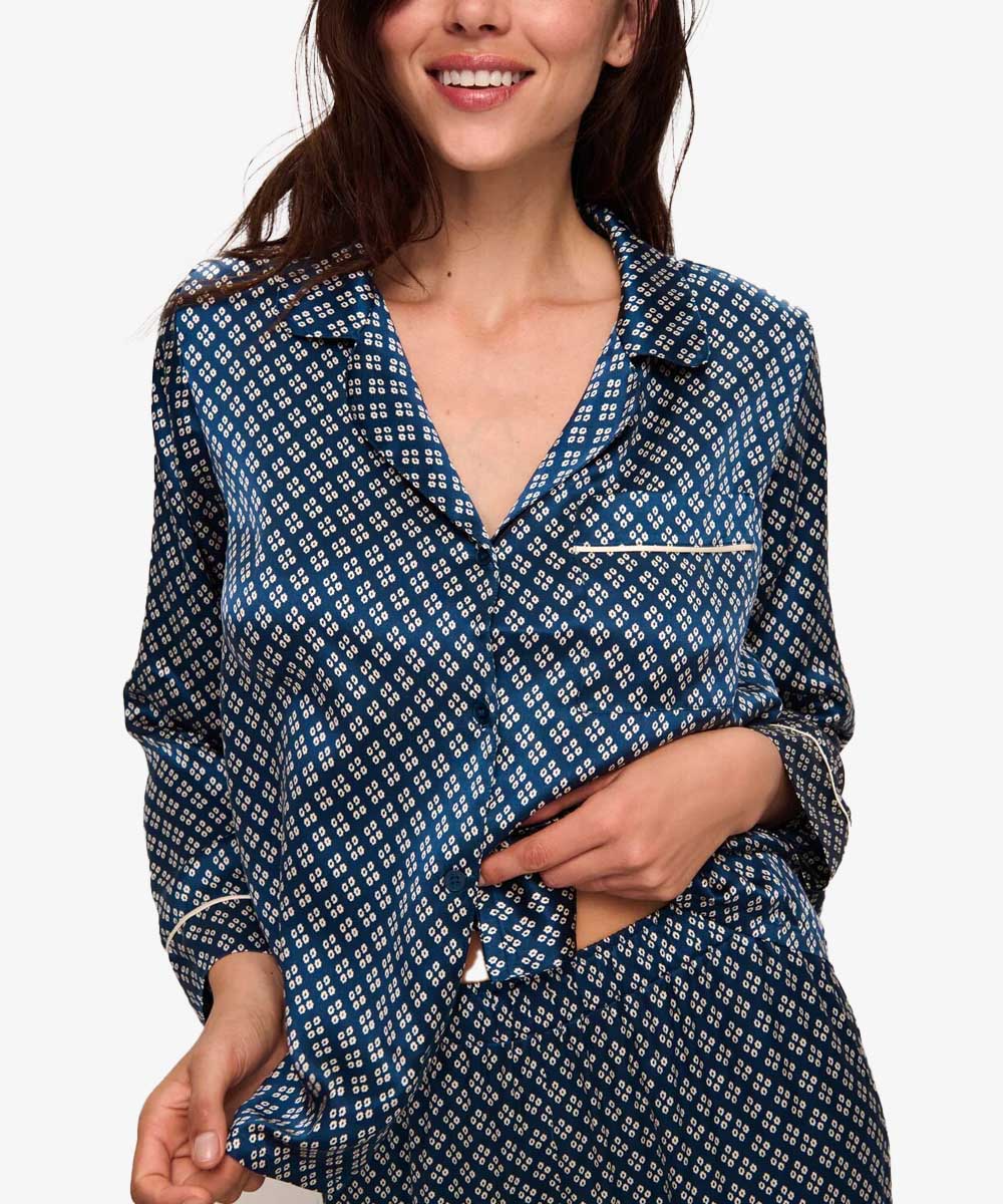 Inez Washable Silk Printed Long PJ Set