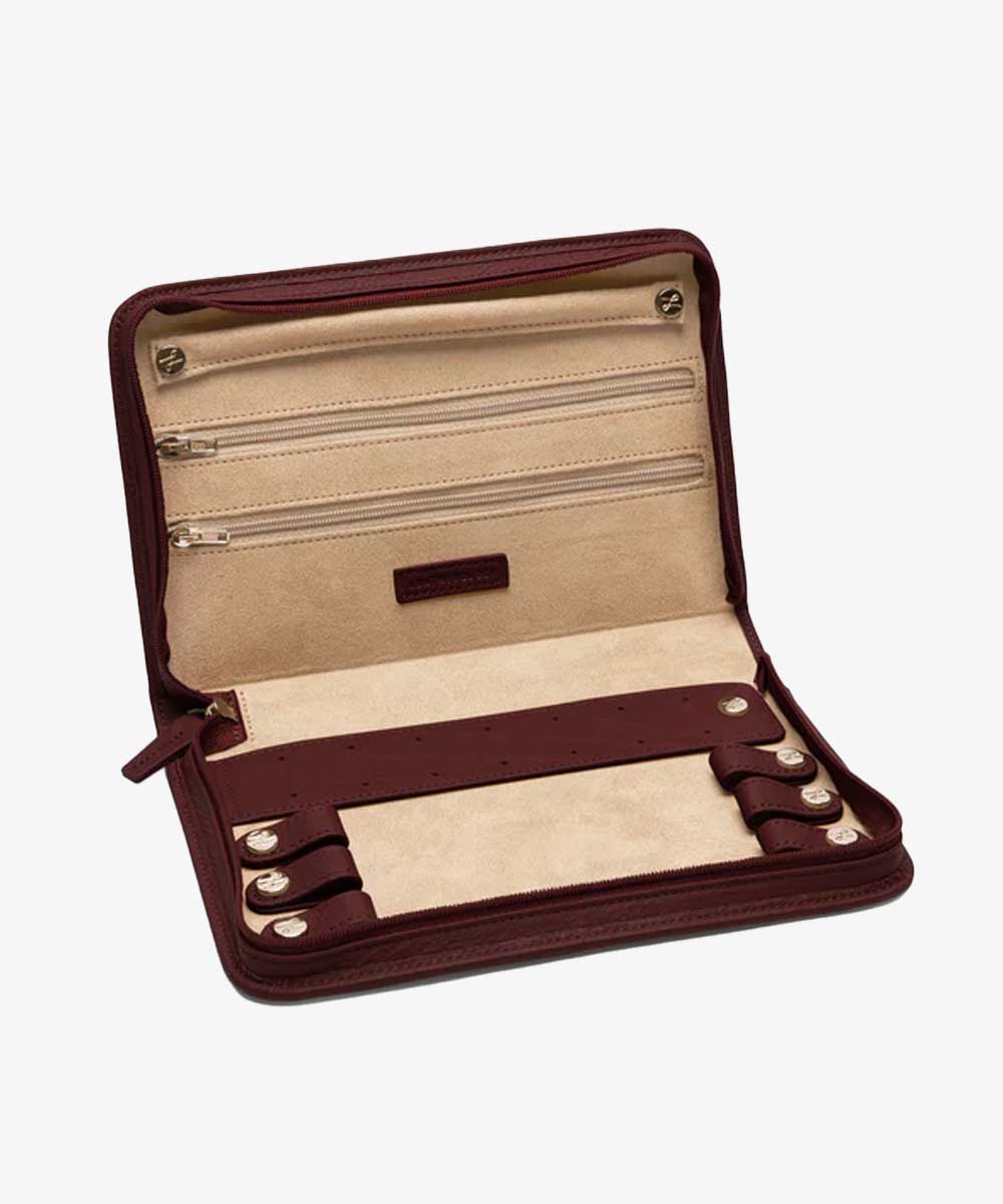 A travel jewelry case is a lifesaver, and this compact, full-grain leather organizer with optional monogramming is one she’ll carry with her forever.