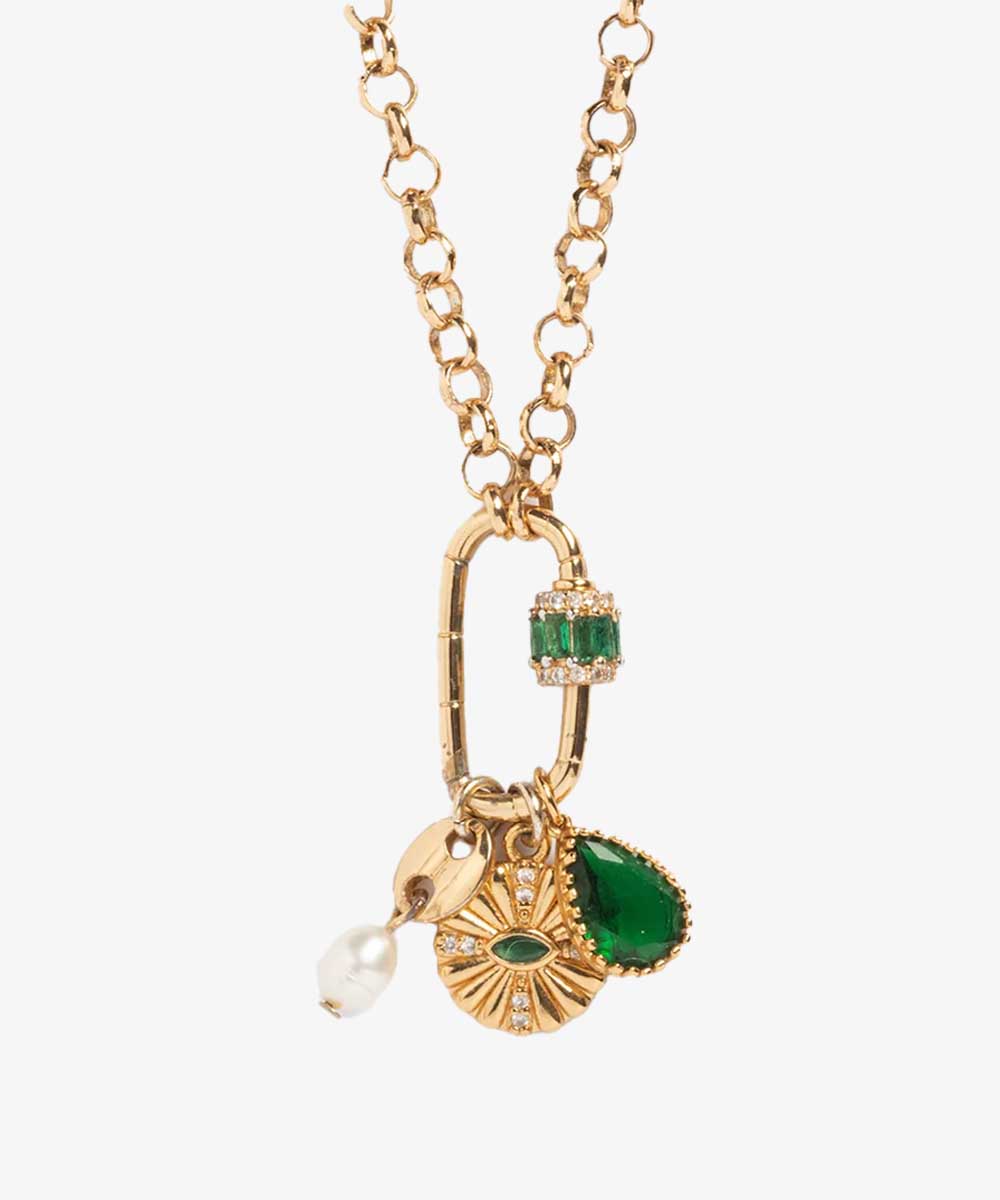This carabiner necklace holds four beautiful birthstone charms.