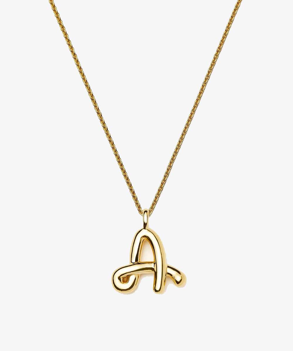 A wavy, bubbly take on the classic letter pendant.