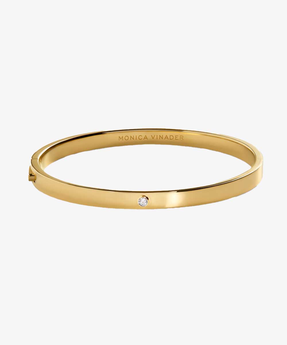 Monica Vinader offers complimentary personalization on this 8k gold vermeil bangle, set with a round-cut lab-grown diamond, making it an extra-special piece.