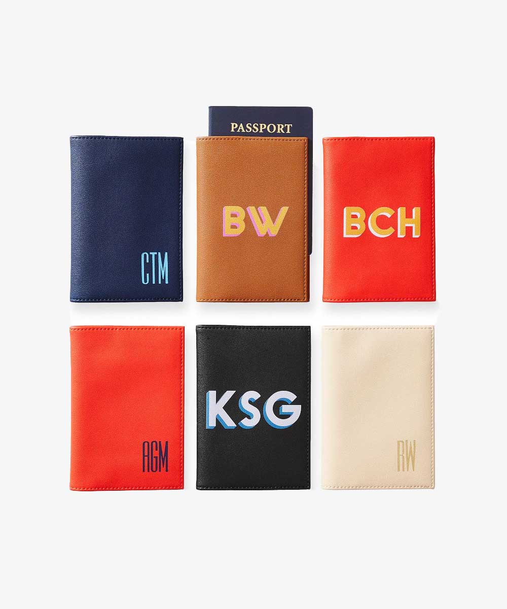 A monogrammed passport holder is both functional and thoughtful.