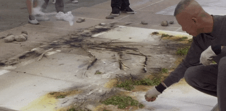 While living in Japan in the 1980s and 1990s, Guo-Qiang started experimenting with explosive art and staging events to show off his technique to a live audience. (See the photographic aftermath of one of these events below.) Per his website: “These projects and events aim to establish an exchange between viewers and the larger universe around them, utilizing a site-specific approach to culture and history.”