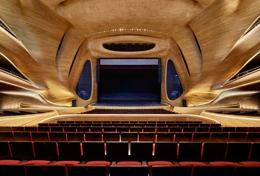 In 2015, construction was completed on the Opera House in Harbin, a frigid city in China’s northernmost province, and it quickly became a muse for designers and photographers alike. Designed by MAD architects, the Harbin Opera house is known for its sinuous metallic exterior and geometric skylights. The design was inspired by Harbin’s icy winter climate and harsh wilderness (average winter temperature: negative 1-degree Fahrenheit)—so it’s supposed to look like it was sculpted by wind and water.