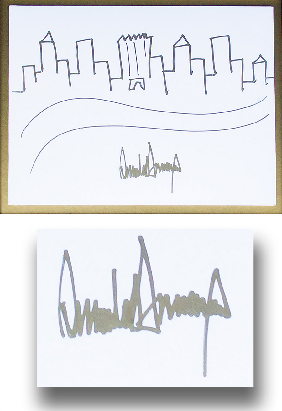 Avid art collectors with at least $9,000 to spare can now bid to own President Trump’s hand-drawn and signed sketch of the New York City skyline, with Trump Tower at the center.