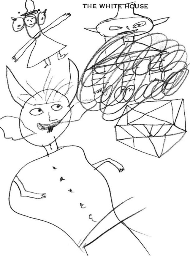 Ronald Reagan: Given that he was an artsy guy before his White House stay, we can imagine that that had something to do with the quality of Reagan’s doodles. Check out a few below that he sketched at the 1981 G8 Summit. Have a look at another page here.
