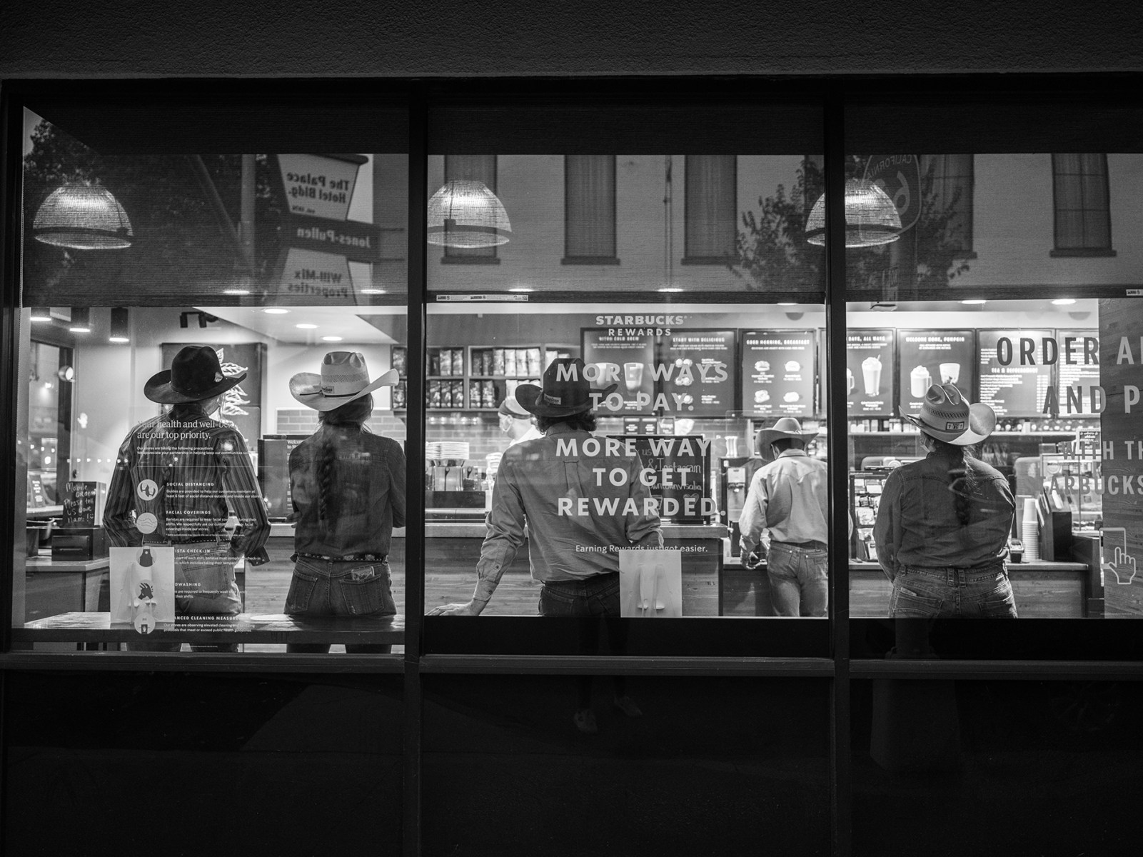 “This was just a long moment that I shot,” Krantz says. “These are all cowgirls from the University of Wyoming. They were going out. The girl to the right also grew up on an Indian reservation in South Dakota. She’s on the rodeo team at the University of Wyoming. That’s how they dress and how they are. They were just having a good time.”