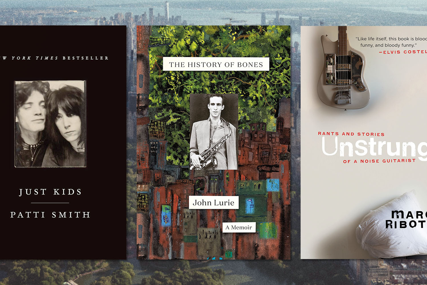 Still, I can’t remember a specific period of the city’s history being given the amount of page space or word counts in such a short time as two new memoirs from a pair of NYC creatives who are relatively unheralded outside of the city but demigods to those who know them: John Lurie’s The History of Bones and Marc Ribot’s Unstrung. Both books cover the life and times of artists trying to get by in the big city between the 1970s and Rudy Giuliani’s meteoric rise to power, culminating with his taking the mayor’s office in 1994 and announcing his intentions to “clean up” the famously filthy city.