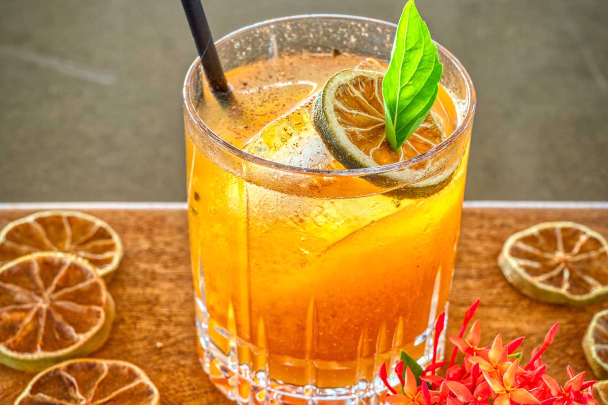 In this cocktail, Crowned Monkey Rum sings harmoniously with the tart acidity courtesy of the tamarind and passion fruit— a special fusion of flavor that can only be found in Nevis, Williams says.