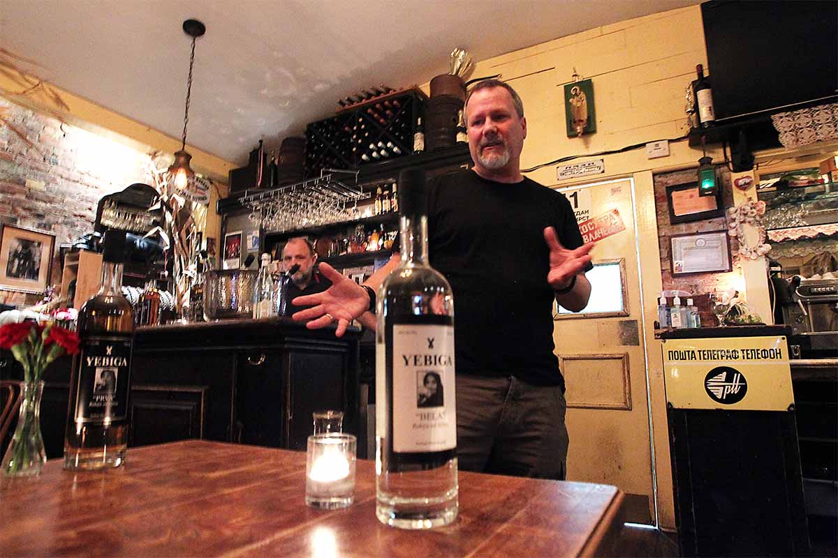 Years after his first rakija discovery, a friend in the drinks industry with an importer’s license helped convince Gould to bring the spirit here. “You can’t afford the good stuff over there, but you can here — it’s like the price of tequila,” he says. “Still, nobody knows what it is. But I thought I could introduce this and it could be a legit spirit in five years. This is my drink — not whiskey, not tequila. And I drink my own supply all the time.”