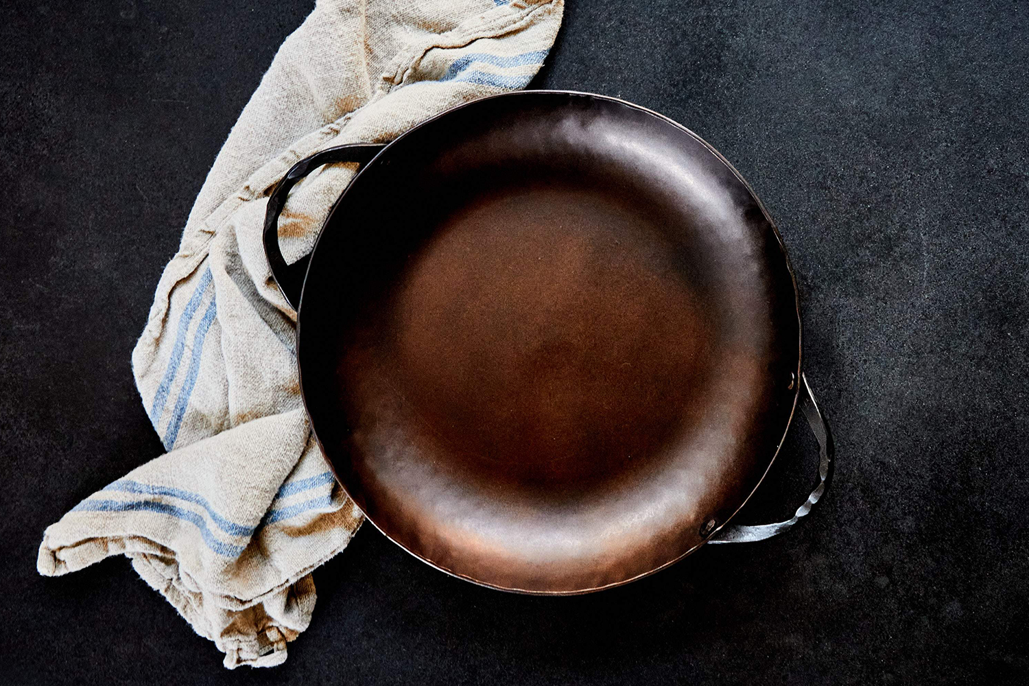 Thomas has made a name for himself as a blacksmith revivalist, hand-forging everything from furniture to metal flowers in North Charleston, South Carolina. This pan was actually the third piece in a collaboration with Smithey, where Thomas had a hand in the designs and, of course, the forging. The handles in the Round Roaster are also hand-hammered. That means no two pans are alike. That goes for this piece, as well as all the other carbon steel cookware they offer, a lineup now including three roasters, a skillet and even a wok.