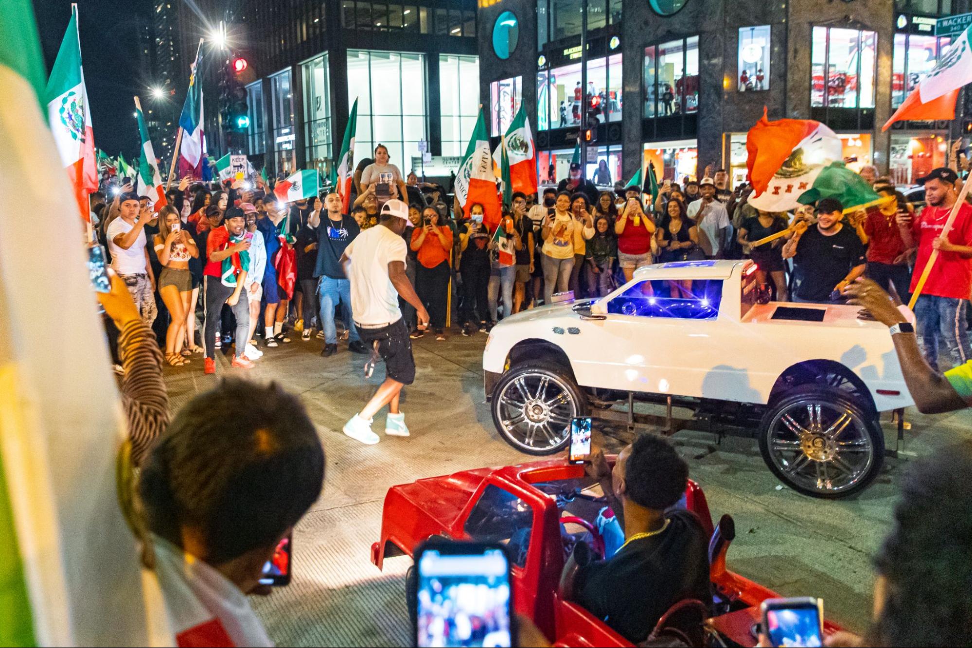 This was Mexican Independence Day, and the celebration took over the Loop. From the Chicago River to Columbus and Wacker Drive, cars and flags were everywhere. Michigan Avenue was a parking lot from Millennium Park to the river. A DJ in a pickup truck was riding around, and you see this guy footworking in the middle of the street. It’s Black and Brown cultures having a good time, and that’s so Chicago. It shows solidarity and joy in the Loop, which is usually for tourists. People from Southwest Side neighborhoods came to the Loop and reclaimed our spaces and our city.