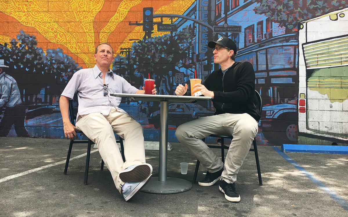 The Outtake: Perloff, with an empty tray, eyeballing the last bite on Pabst’s plate: “I’ll give you $100 for that taco.” Responds Pabst: “Absolutely not.”