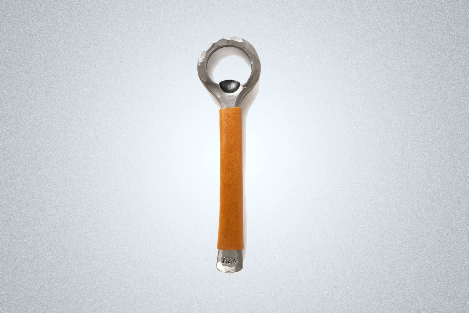 The leather brand Moore & Giles, now celebrating its 90th year, has created the quintessential bottle opener. Crafted from hand-forged iron and a hand-stitched Italian veg-tanned leather, this one’ll look better over time.