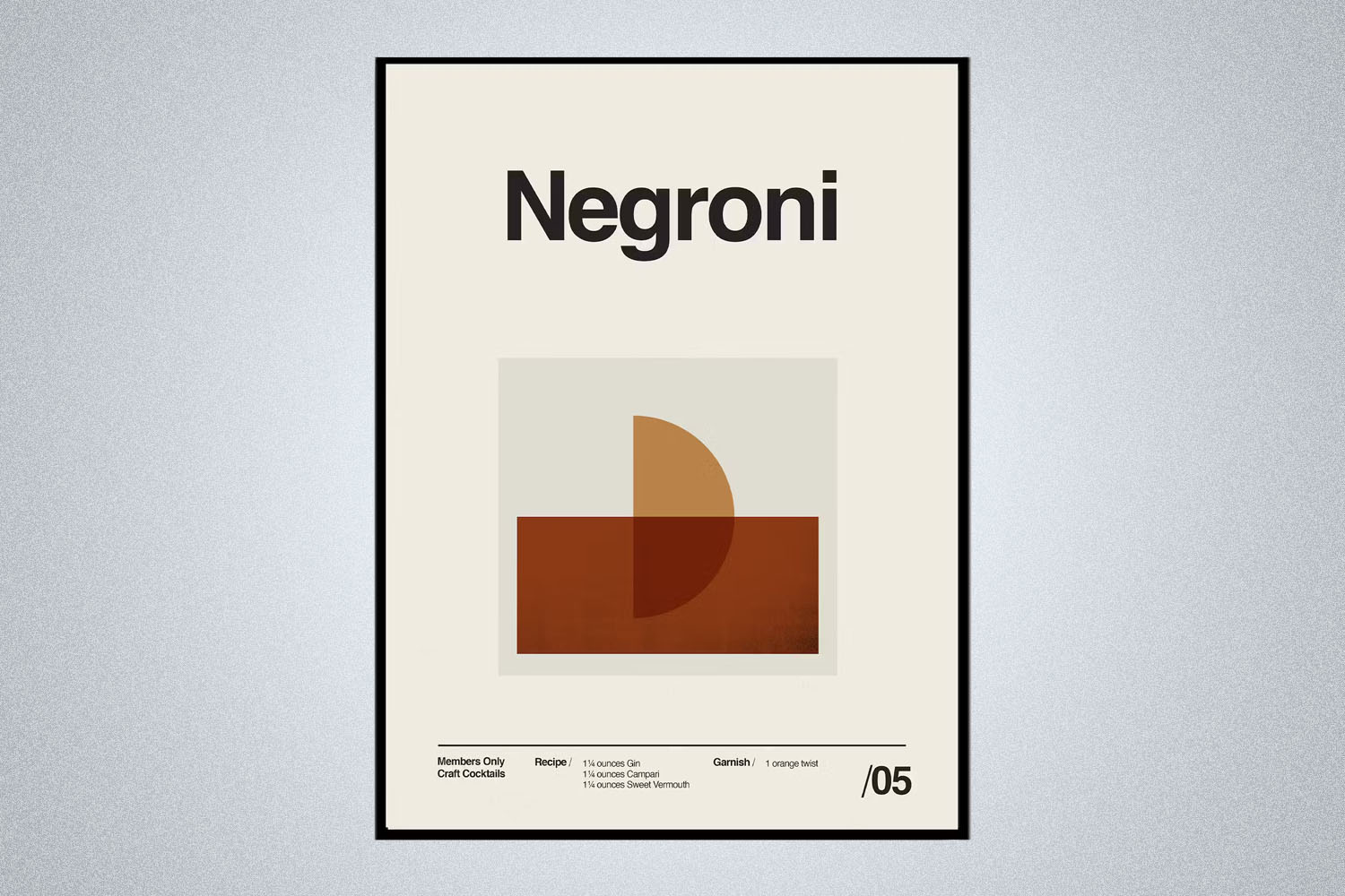 Sandgrain’s artwork is minimalist beauty, allowing the typeface, simple shapes and color to tell a story. Like the story of a classic cocktail, printed with a giclée fine art process on thick artisan paper with a matte finish. Frame not included — but we have some suggestions on how to do that simply.