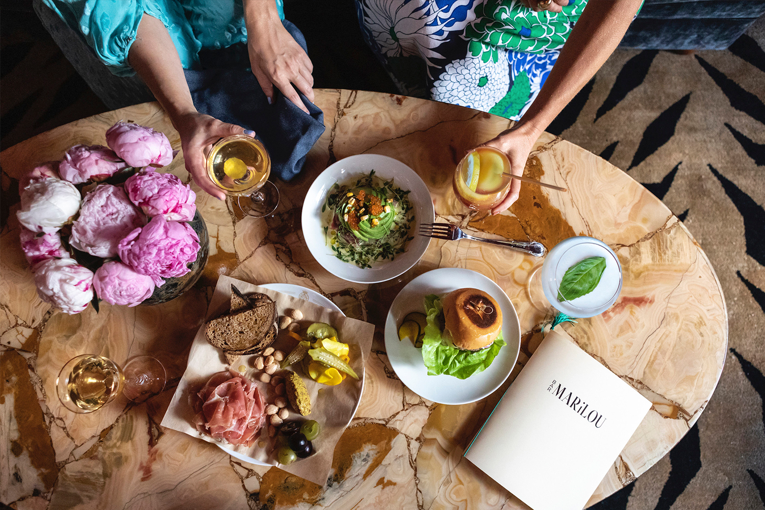 Bar Marilou’s cocktails are generally “lighter, more flavorful,” with a bit less alcohol, Fontaine says, and the food menu includes light bites like scallops and caviar, a frisée salad and cheese puffs. But there’s still a hearty hamburger with rich sheep’s milk cheese if you want more of a balance.