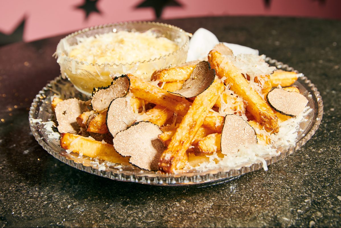 And that’s not all: They are also seasoned with Guerande truffle salt, and served with Mornay sauce made from udder cream, black truffle butter and Gruyere truffled Swiss raclette. All of this is served on a Baccarat crystal Arabesque plate with a sprinkling of 23-karat edible gold dust for good measure.
