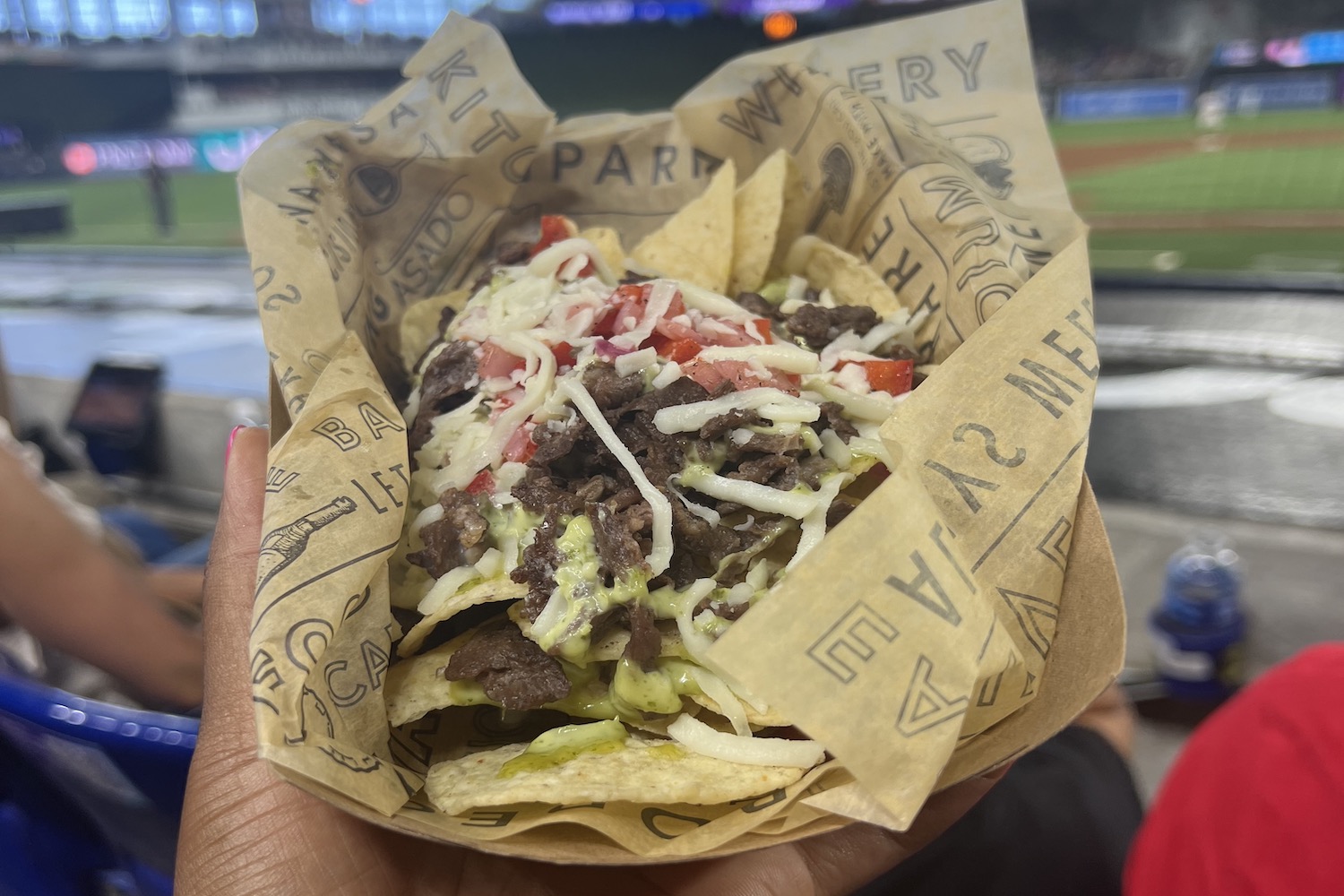 The newest item at the park, the Cubana Gigante is not for the faint of heart. Each sandwich takes about 30-40 minutes to prepare, and only a limited number of these are made per game — my advice is to order as soon as you get to the park. Now for the sandwich itself: It measures roughly 34 inches and weighs three pounds, with enough to feed 4 to 8 people. As far as Cuban sandwiches go, it’s got all the right elements: roasted mojo pork, ham, Swiss cheese, pickles and mustard. The sandwich was a win for me — quite flavorful — but there was so much of it. Go for it if you’re attending a game with a large group or plan on taking leftovers with you.