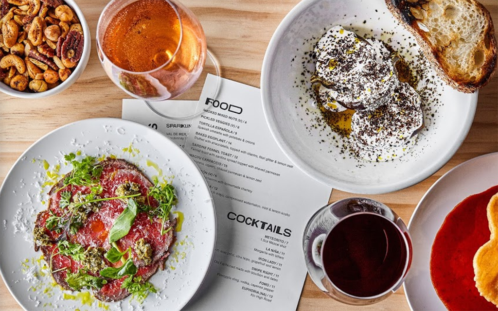 You’re dining on: A beer-forward menu (20 on tap) with simple pleasures to share and chow down on. Big hits include Smoked Chicken Wings and a Porterhouse Steak for two or the Grilled Bread with Duck Tallow and Roasted Oysters. To boot, there’s a weekly Beer Club for brew enthusiasts.