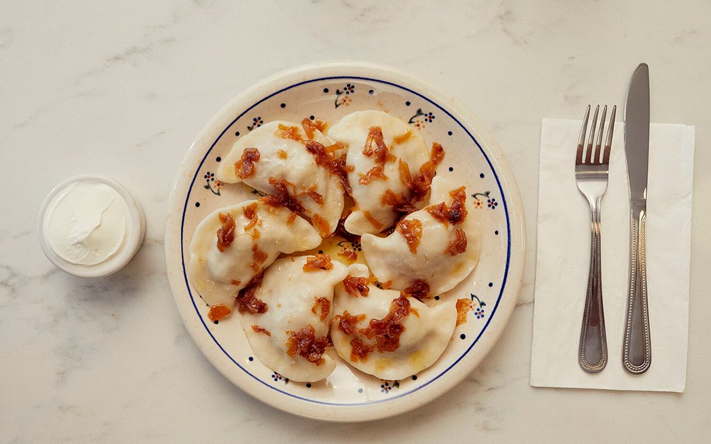 You’re dining on: Poland’s finest dumplings in a plenitude of sweet and savory iterations. Also on offer: solid wine, perfect borscht, croquettes and a serious need for breath mints.