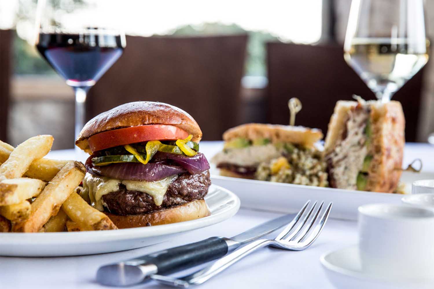 More about that burger: A house blend involving Thompson River Ranch-brand wagyu beef for the patty, plus fries.