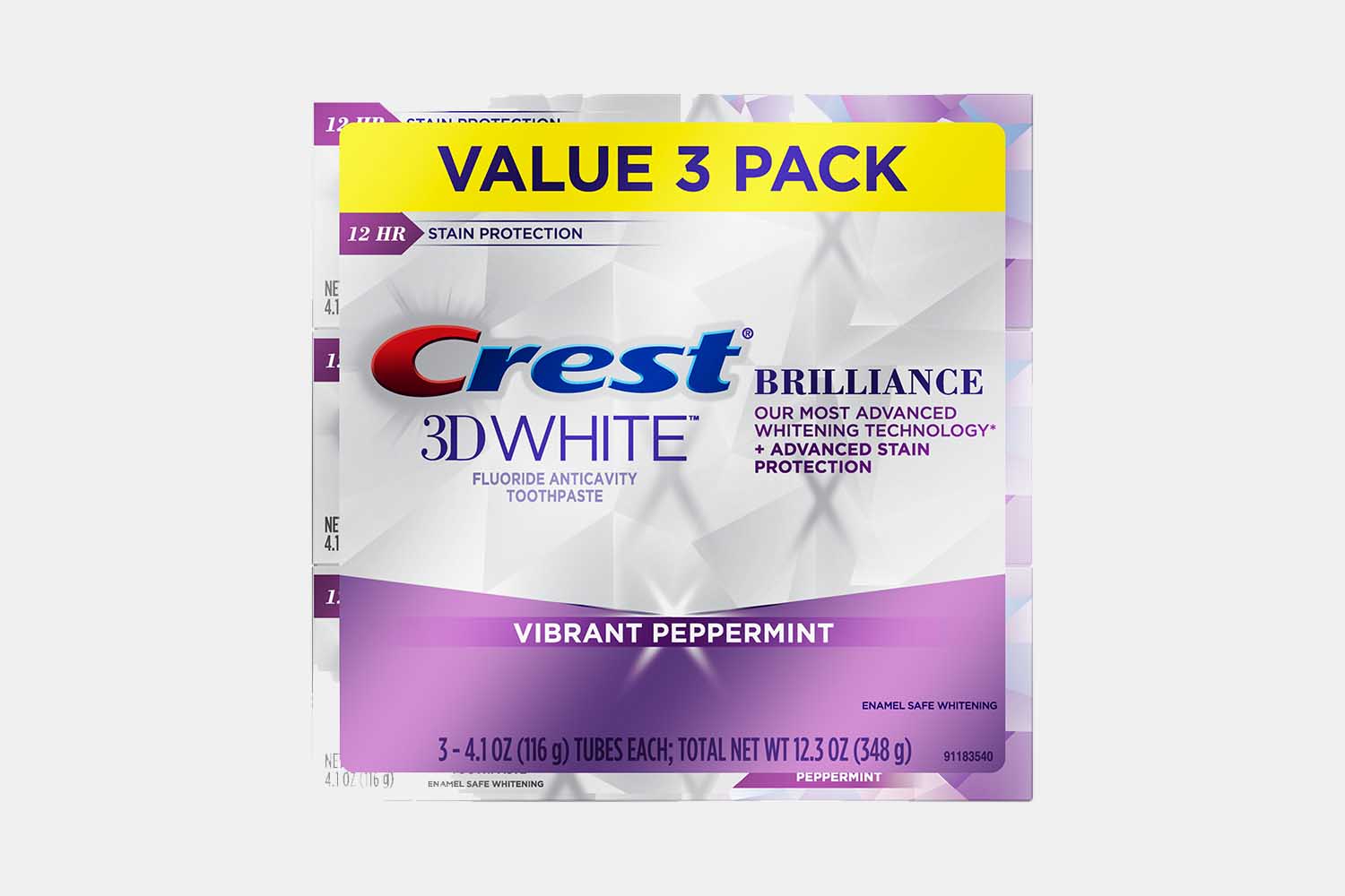 Another whitening toothpaste Laylieve recommends is Crest’s 3D White Brilliance, a peppermint-flavored toothpaste with 12-hour stain protection that removes up to 95% of surface stains in 3 days and will deliver you, as one satisfied customer reported, “movie star teeth.”