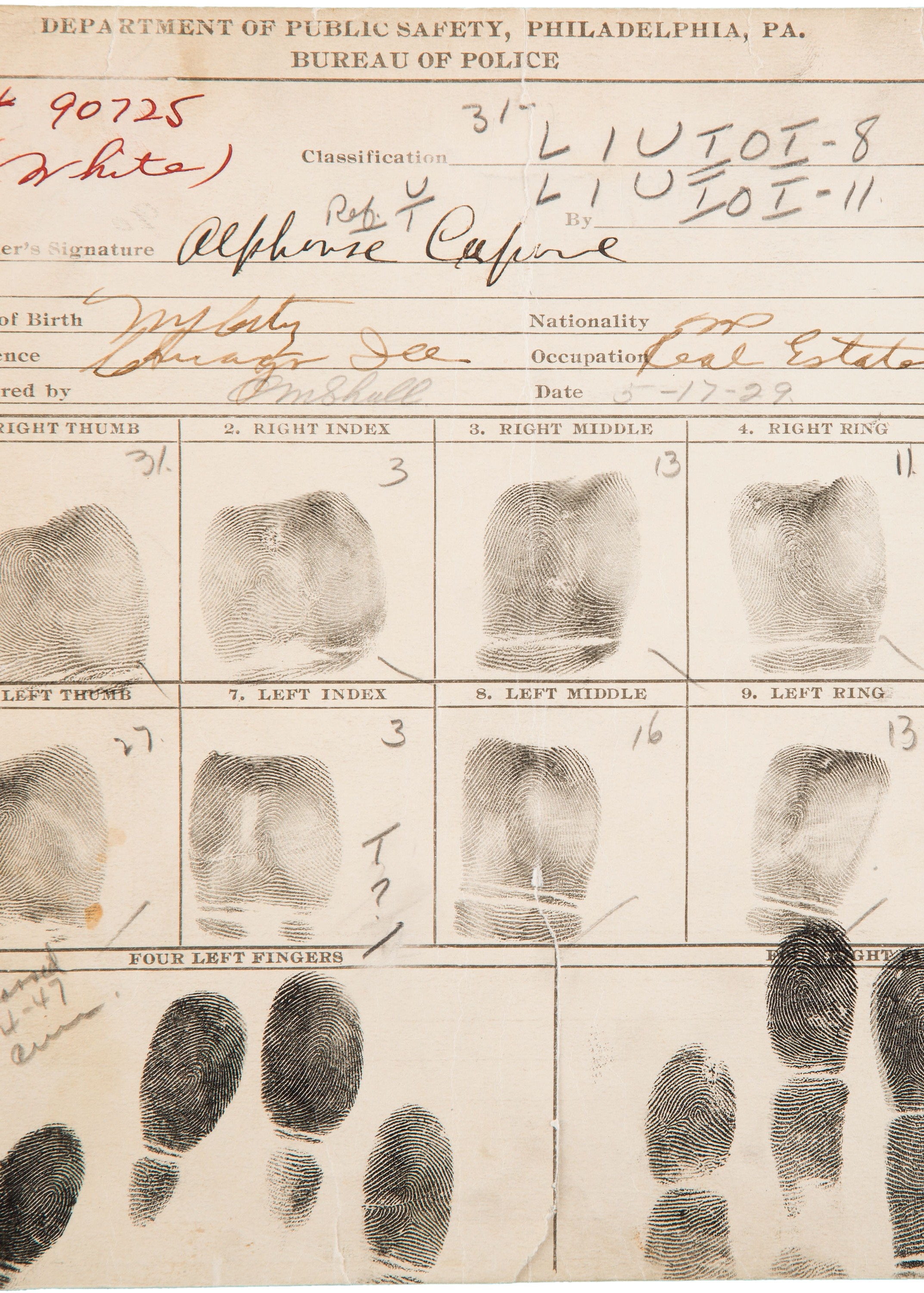 Heritage Auctions sold famed gangster Al Capone’s rap sheet in a recent sale. The document, from 1929, features Capone’s signature and fingerprints from when he was booked in Philadelphia. Take a look at the sheet below.