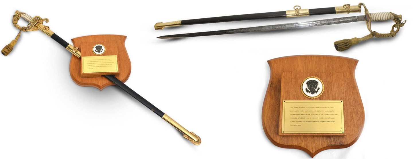 Another item of note from the auction is the naval issued ceremonial sword of Lieutenant Henry E. Hirschy Jr. The sword was one of the two that guarded President Kennedy’s coffin in the East Room and remained on the catafalque during the thirty day mourning period after his burial.