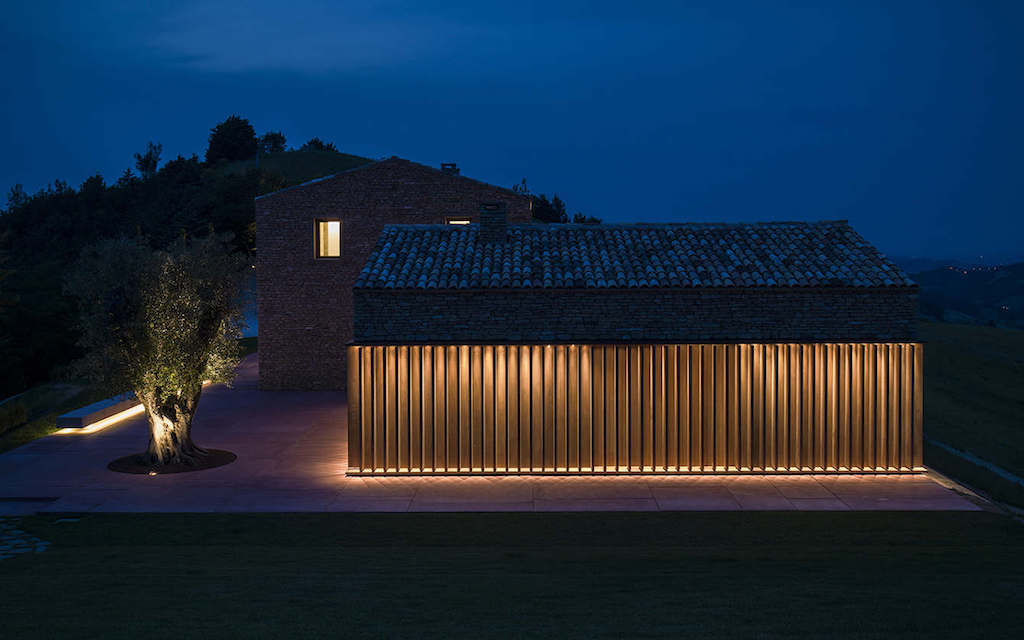 Not at AP House. A newly finished project from GGA Architects, the rural Italian abode has a facade evoking the area’s history — stone walls and tiled roofs — with a decidedly contemporary interior.