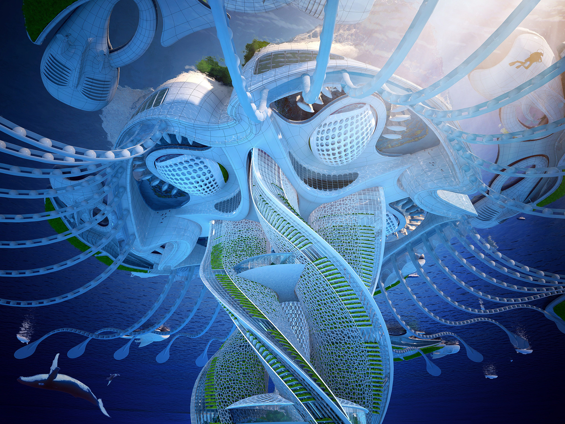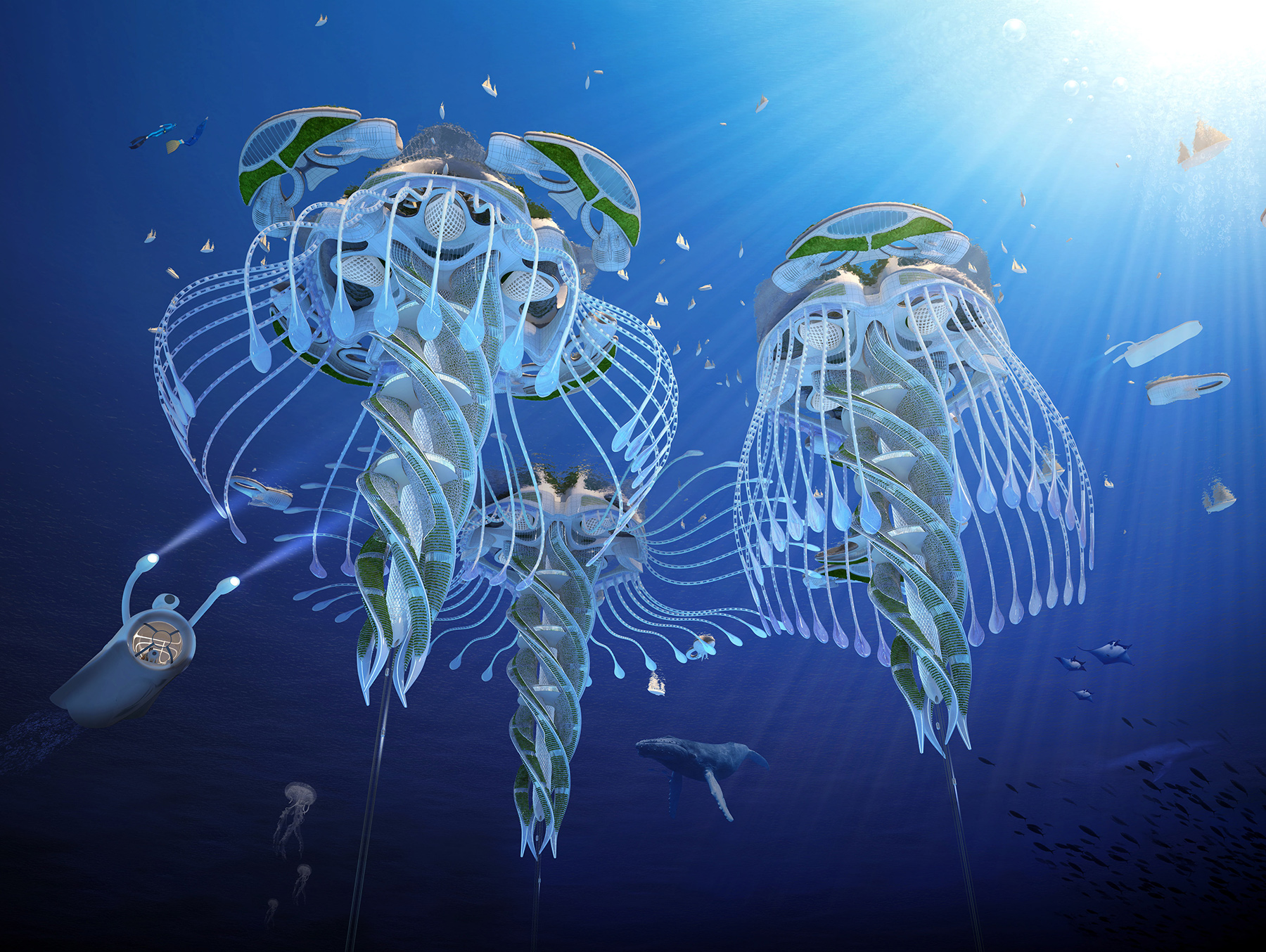 Belgian Vincent Callebaut has a designed an underwater skyscraper. These “oceanscrapers” would house up to 20,000 people; reduce our carbon footprint on the planet; and wouldn’t require fossil fuels, because they’d produce their own energy and heat.