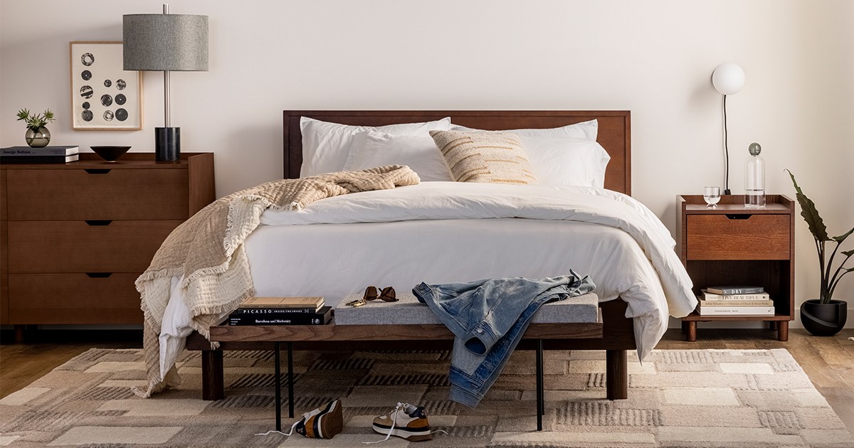 On Tuesday, Burrow launched their new Bedroom collection, which does include bed frames in various finishes and dressers in various drawer-configurations — the pieces we’d expect to see from them — but also something we didn’t expect: two of their own in-house mattresses. It wasn’t enough for them to take on all the other furniture disruptors, they had to take on the mattress disruptors as well.