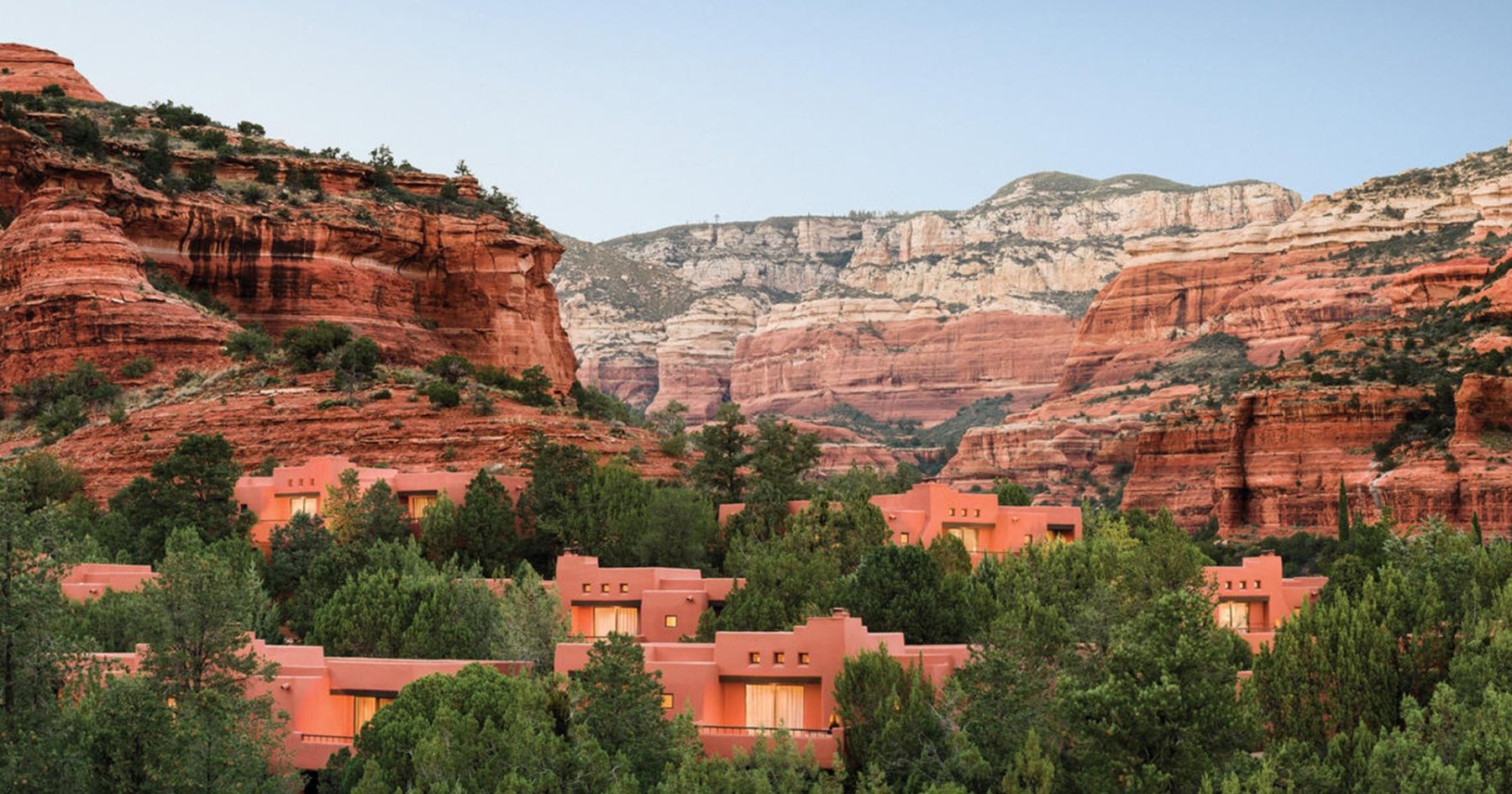 The developers behind The Enchantment Resort were wise to let the environment speak for itself. Their burnt sienna, adobe-style buildings sit discreetly within the groves of pinion and juniper which fill the Boyton Canyon. This low profile beckons you to soak up the natural wonder of the canyon walls all within the comfort of a pillowy bed, in-room fireplace and sky-lit bathroom with a soaking tub big enough for two red-blooded Americans.
