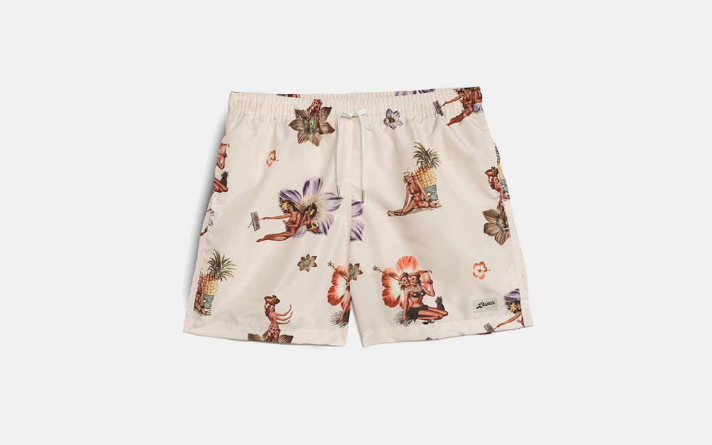 For those who can’t get past the casual look and feel of trunks and shorts with a drawstring or elasticized waist, these shorts from Solid & Striped feature a hidden drawstring, still allowing for comfort while offering a slightly more elevated look in the form of the “button” closure.