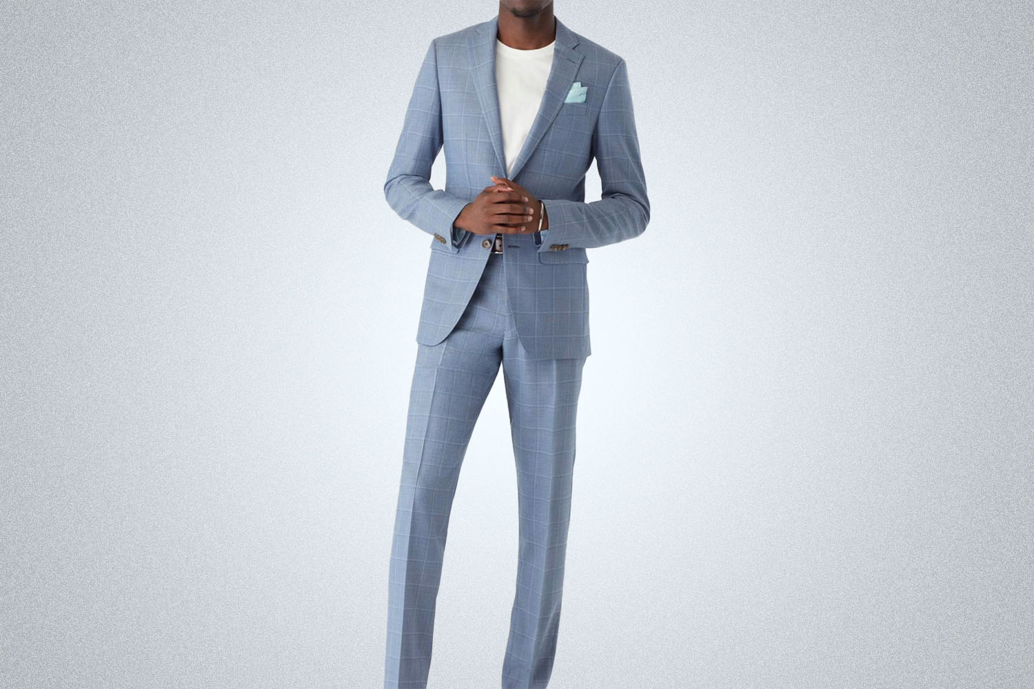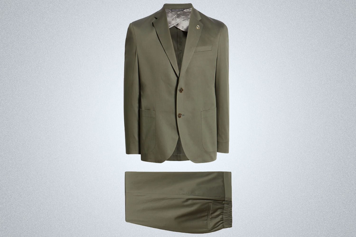 J.Crew’s trusted Ludlow suit has been a staple in average guys’ closets since 2008, but don’t think it’s the same suit as it was all the bloghouse-y years ago. Updated with a (slightly) more relaxed take on the slim-fit style and premium Italian cotton chino cut at the revered Duca Visconti di Modrone, it’s the sole suit on this list we’d literally wear anywhere. Toss in a burnished tobacco color (brown suits are in), and what’s not to like?