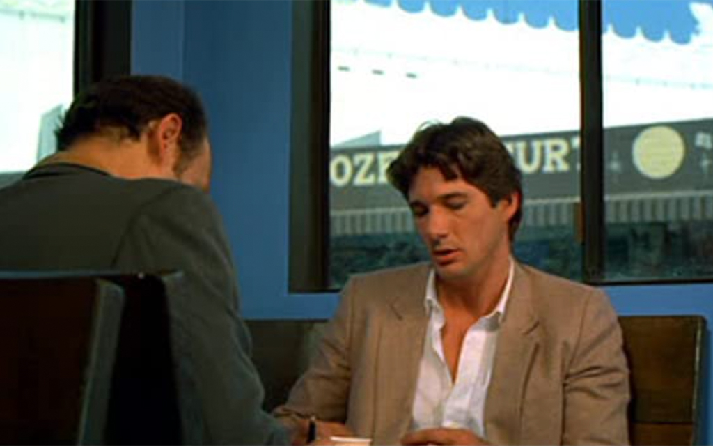 Responsible for outfitting Gere in the film was Giorgio Armani, his aesthetic mark apparent. A master of suiting, Armani’s involvement in the film helped to reimagine the way a suit and suiting separates could be worn, foregoing the traditional use of more structured fabrics in favor of those that offered movement and malleability (e.g. linen), allowing for ease and comfort without sacrificing style.