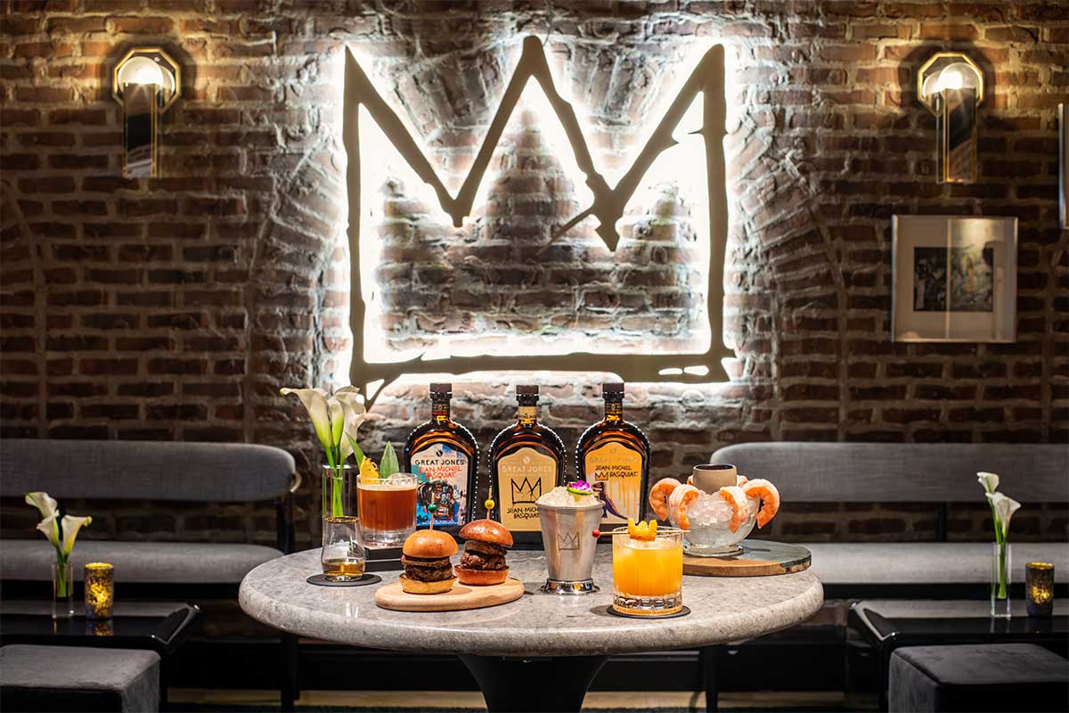 The basement speakeasy Basquiat Bar, meanwhile, was inspired by the artist’s favorite bar (The Mudd Club) and highlights photos of the artist and friends, a couple of original Basquiat prints, and other interior designs inspired by the early 1980s. There’s also Basquiat’s New York, a tasting room in the distillery’s multi-sensory Barrel Room where guests can partake in a whiskey tasting surrounded by oversized Basquiat imagery. Other Basquiat-inspired moments at the distillery include a specialty cocktail class (every Wednesday and Saturday) and a bespoke, Basquiat-inspired cocktail served at the distillery’s Tasting Room.
