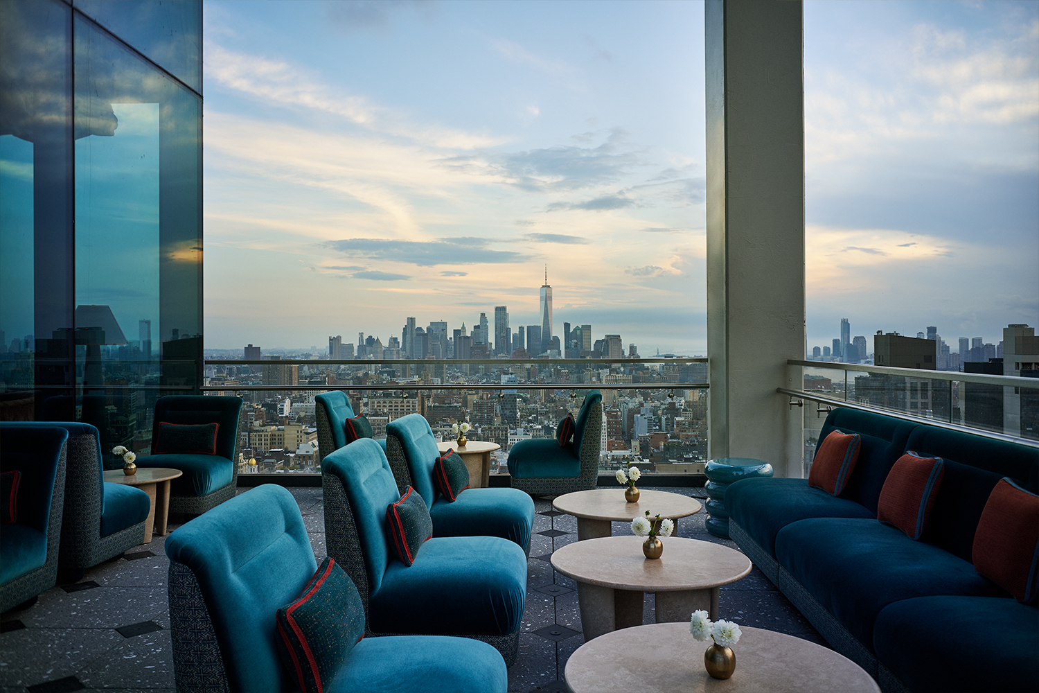 “This is a bar where we wanted guests to feel glamorous and carefree; it is a destination in its own right and so it needed to feel differentiated from the wider hotel whilst still feeling cohesive with the hotel brand,” Brudnizki told me. He went on to say that the aim for Nubeluz was to create “a star in the New York sky,” and a bar that both “harks back to the iconic hotel bars of Manhattan whilst feeling current for today’s metropolitan audience” and “endures time and becomes a modern classic.”