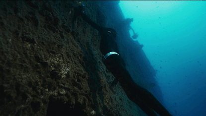 Watch divers Guillaume Néry, Morgan Bourc'his, and Rémy Dubern explore it