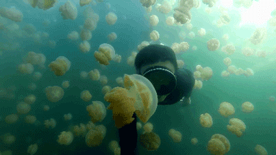 In the video below, photographer Kien Lam swam with the millions of non-stinging jellyfish that call a lake in Micronesia home.
