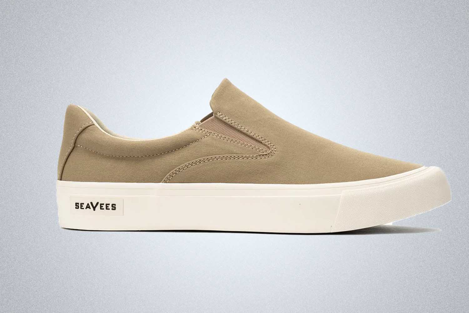 We don’t need to explain the appeal of Vans. You know them, you love them, and because of their mix of affordability, easy-wear and unrivaled clout, this canvas sneaker remains our preferred slip-on sneaker of choice. Get an all-white pair, and beat the hell out of ’em, please.
