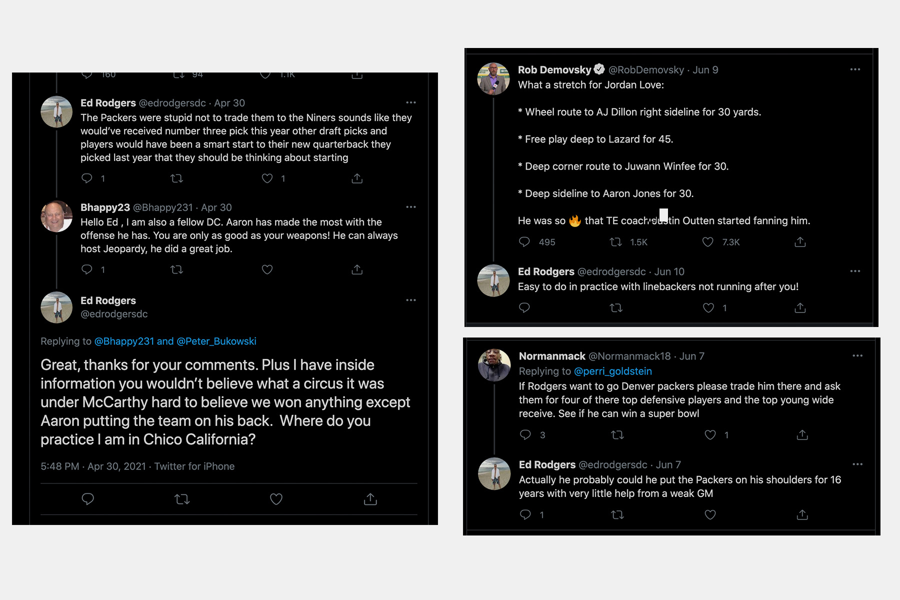 Of course, as with any good fact-finding mission in the wild west of the world wide web, there are a few factors casting doubt on the account’s veracity. For one, while @edrodgersdc has retweeted and interacted with the account of Aaron’s brother Luke, that activity has never been reciprocated. And then there’s the obvious: Aaron Rodgers is famously critical of the media, and rarely speaks publicly about any off-field topic, as evidenced by his tight-lipped approach to the events of this offseason. In this context, his father so brazenly criticizing the Packers on social media feels like an act of near treason, estrangement or not.