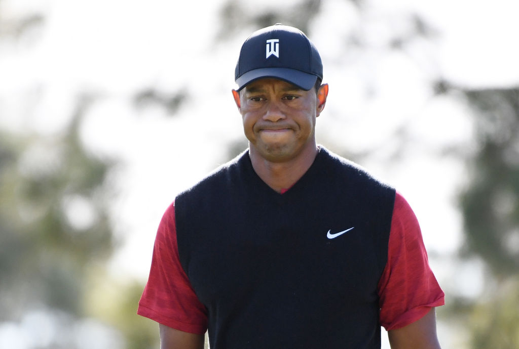 Tiger Woods after missing a putt. Harry How/Getty for The Match)