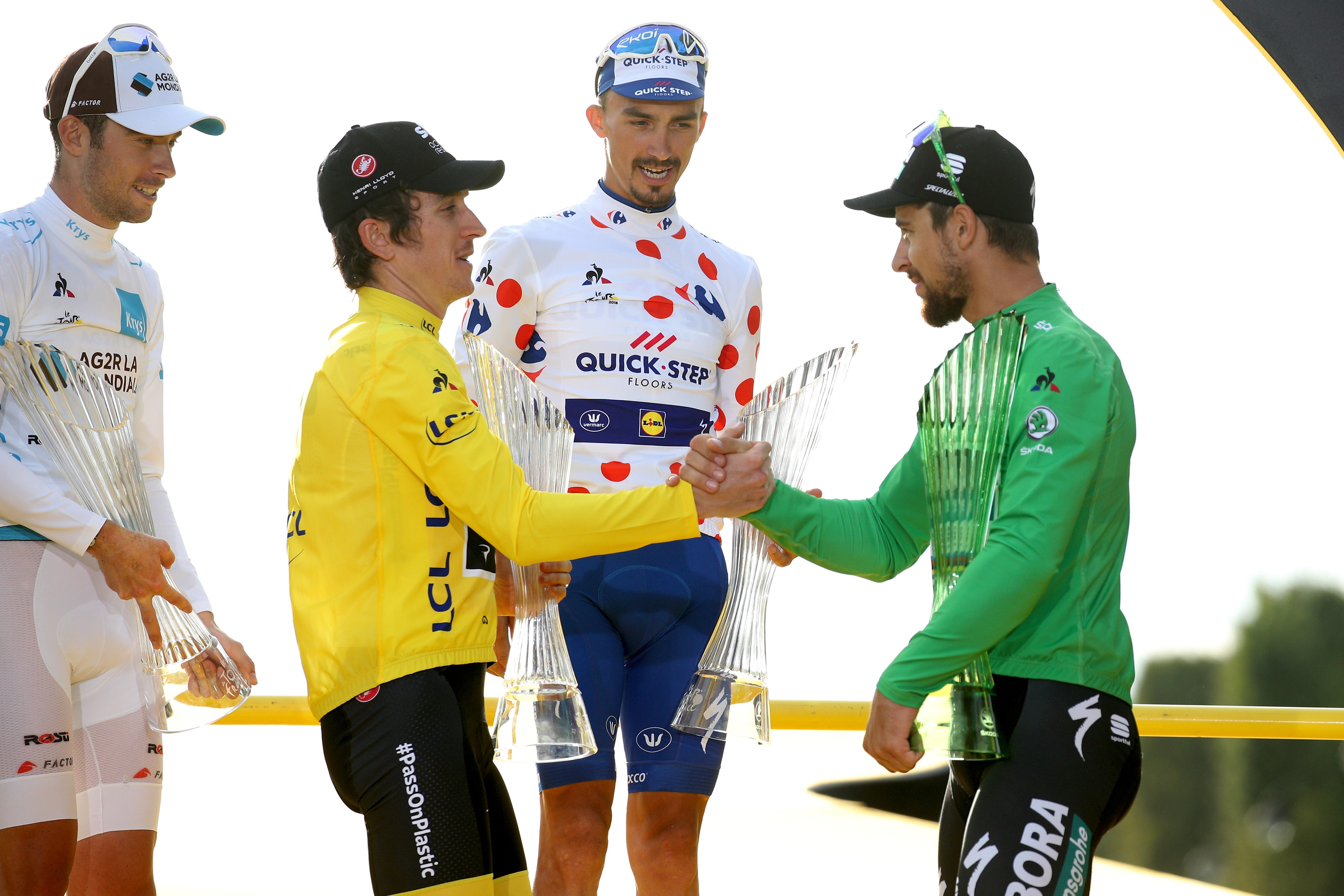 Other career-making jerseys up for grabs are the Polkadot, awarded to the race’s best climber, and the Green Jersey of points leader — aka the Tour’s most consistent finisher. The former is determined in the mountains, with King of the Mountains points awarded at the top of each pass and stage finish — a carrot that encourage’s Hail Mary attacks over the race’s toughest terrain. The Green Jersey, on the other hand, is usually determined in the sprints — rack up enough wins and fast top-five finishes, usually contested elbow to elbow, with plenty of crashes and acrobatic bike throws at the line thrown in for good measure, and the coveted shirt (and prize money) are yours.