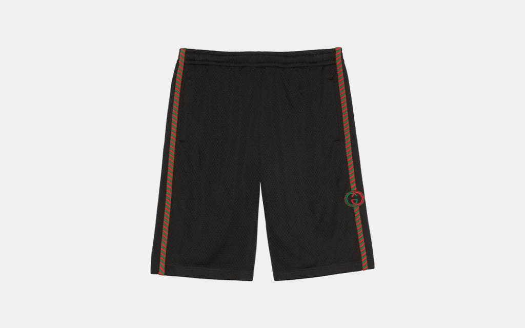 But the designer basketball shorts populating the market today aren’t of the same variety as those scored for free in gym class or relics of time spent on sports teams. They largely maintain the same cut and mesh fabric customary to the shorts, but they’re outfitted them with patterns and logos to elevate the design to an entirely new level. Still, there remains something ridiculous to the concept of Bermuda-length mesh shorts accompanied by the interlocking Gs of the Gucci logo. The two disparate aesthetics joining forces is what makes them so appealing.